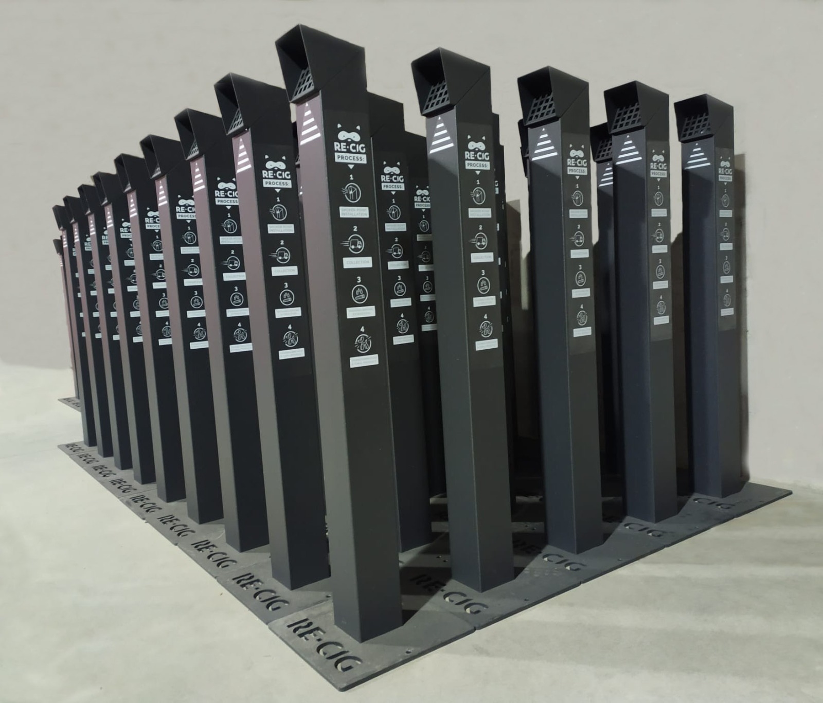 Re-Cig opera quindi nel mondo dell’economia circolare e produce in proprio gli smoker points che servono alla raccolta dei mozziconi. “Sono posacenere pensati con un design che non permette all’acqua piovana di entrare, evitando così di sgocciolare e portare all’esterno la componente inquinante delle sigarette”, spiega Fimognari. La start up si occupa anche della fase di raccolta dei mozziconi, che vengono svuotati dagli addetti alle pulizie dei nostri clienti in contenitori più grandi che periodicamente vengono ritirati dal personale incaricato di Re-Cig. Siamo l’unica azienda in Italia iscritta all’albo dei gestori ambientali ad avere l’autorizzazione a gestire i mozziconi di sigaretta per tutte le utenze non domestiche. Una categoria che è stata creata ad hoc per Re-Cig, perchè prima non esisteva nessuna realtà simile nel nostro Paese.